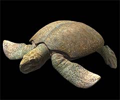 Like modern turtles, it laid eggs by burying them in sandy beaches under cover of darkness. Its nearest living relative is the world's largest turtle, the leatherback.
