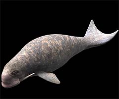 Its two 25cm tusks made Odobenocetops look like a cross between a walrus and a manatee. In males only, the right hand tusk grew much larger - up to 1.35m long. It didn't have any teeth.