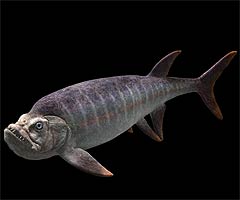 Xiphactinus had a dark blue back and light silver belly to camouflage it from above and below. Sharp teeth at one end and a powerful tail at the other combined to make it a formidable pursuit hunter.