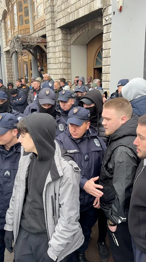 Kako je veče odmicalo, nezadovoljstvo je sve više bilo upereno ka policiji, uz uvredljive povike i guranje na stepeništu ispred ulaza.