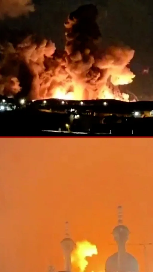 Na snimcima se vide snažne eksplozije, potom i ponovljene detonacije, ogroman stub plamena i dima, i krhotine koje lete i prema gradu i prema planinama u blizini baze.