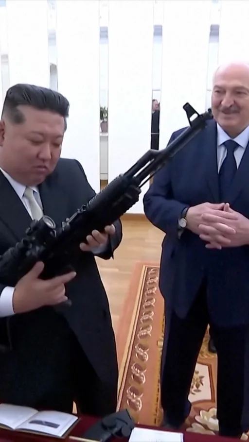 Predajući severnokorejskom vođi automatsku pušku, Lukašenko se našalio: „Za svaki slučaj ako se pojave neprijatelji“, čuje se na video snimku koji su objavili beloruski državni mediji.