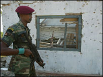 On the instruction of President Mahinda Rajapakse, about twenty five local and foreign journalists accompanied by cabinet ministers were taken to the Palali military base on Tuesday afternoon to get a first hand look at the results of the Tamil Tiger air attack. The delegation included ministers Jeyaraj Fernandopulle and Rajitha Senaratne. Speaking to the BBC after meeting the soldiers in Palaly, Minister Fernandopulle said the attack was successfully repelled. six soldiers killed in the attack “The enemy aircrafts had approached Palaly airport around 01.05 am. The military had spotted them and opened fire. The Tamil Tiger aeroplanes had retreated as a result of the retaliatory fire. They had dropped three bombs but two of them were off target. The other bomb was dropped on one of the bunkers from which the military was firing at them. Six soldiers who were in the bunker were killed as a direct result of this air attack by the Tamil Tigers”.