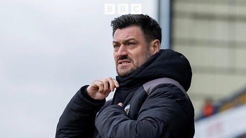 Manager Jackson speaks to BBC's Dave Victor after the 4-2 loss at home against Orient