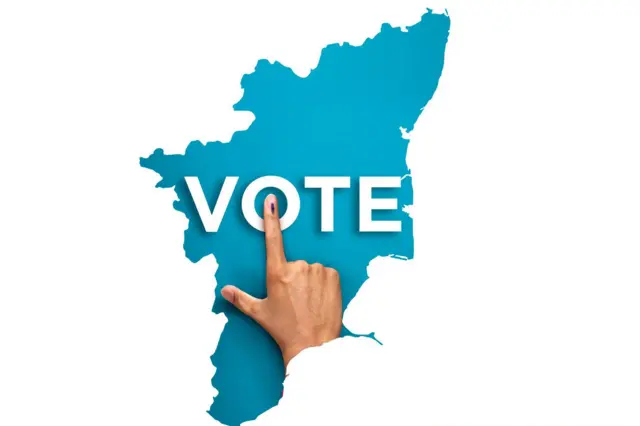 படக்குறிப்பு, மதிமுக பொதுச் செயலாளர் வைகோ தென்காசி மாவட்டம் கலிங்கப்பட்டியில் அமைந்துள்ள வாக்குச்சாவடியில் வாக்களித்தார்