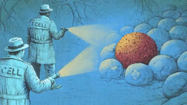 "உடல் அல்லாதது போல் தோன்றும் செல்களைக் கண்டறிந்து அழிக்கும் இயல்பான திறன் உடலுக்கு உண்டு," என்று இம்யூனோதெரபி வளர்ச்சியை ஊக்குவிக்கும் அமெரிக்க இலாப நோக்கற்ற அமைப்பான 'பார்க்கர் இன்ஸ்டிடியூட் ஃபார் கேன்சர் இம்யூனோதெரபி'யின் தலைமை நிர்வாகி கரேன் நுட்சன் விளக்குகிறார். அனைத்தும் சரியாக வேலை செய்தால், அதில் புற்றுநோயாக மாறிய செல்களும் அடங்கும். ஆனால் சில நேரங்களில், புற்றுநோய் செல்கள் அந்த அமைப்பை தவிர்க்கின்றன அல்லது ஏமாற்றுகின்றன, இது ஆபத்தான கட்டுப்பாடற்ற வளர்ச்சிக்கு வழிவகுக்கிறது. அவை தங்களைச் சுற்றியுள்ள ஆரோக்கியமான செல்களிலிருந்து வேறுபடுத்த முடியாதபடி, வெளிப்படையாகவே மறைந்திருக்கின்றன.