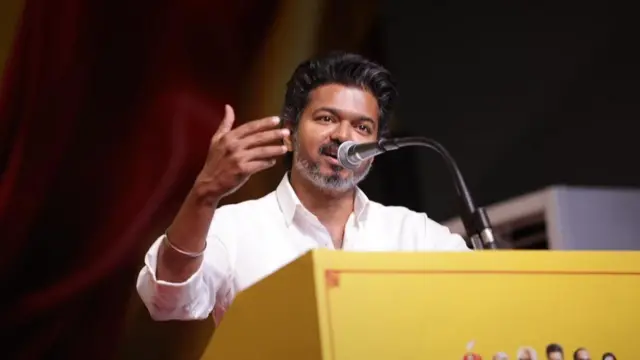 விஜய் இரு தொகுதிகளில் போட்டியிடுவது அவரது "நம்பிக்கையின்மையை வெளிப்படுத்துவதாக" கூறுகிறது திமுக.