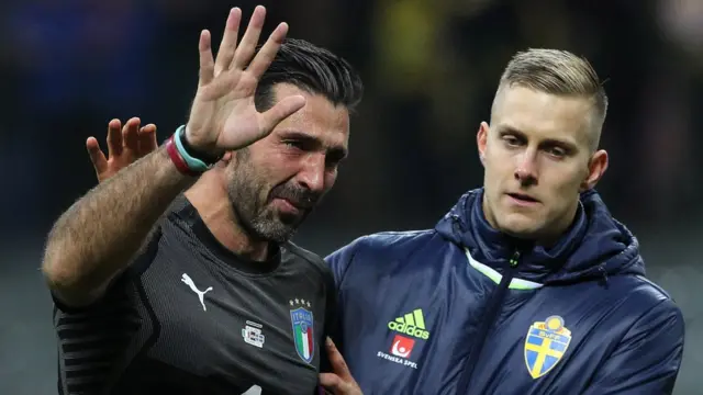 Maç sonrası Rai kanalına konuşan milli takım kaptanı, kaleci Gianluigi Buffon gözyaşlarını tutamadı. Aynı zamanda 20 yılın ardından milli takımdaki son maçını da oynayan Buffon, "Milli takımdaki son resmi maçım elenmemize denk geldiği için üzgünüm" dedi.