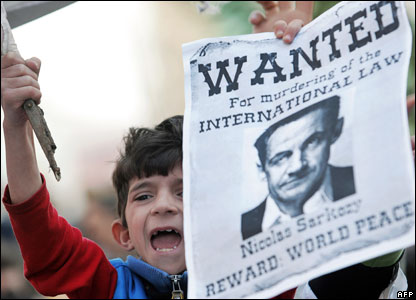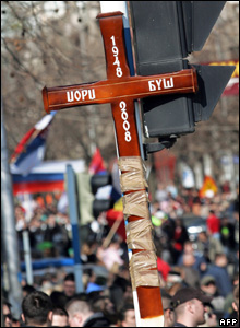 Protestolarda Bush'un adı yazılı bir haç protesto amacıyla taşındı