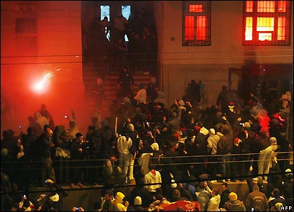 Saldırılar 150 bin Sırpın düzenlediği barışçı gösteri sonrası patlak verdi