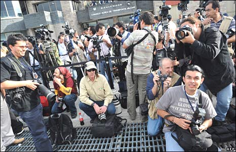 Dünya medyası Kolombiya'nin başkenti Bogota'da FARC örgütünün elindeki en tanınmış rehinenin görüntülerini yakalayabilmek için Catam Hava Üssü'ne doluştu.