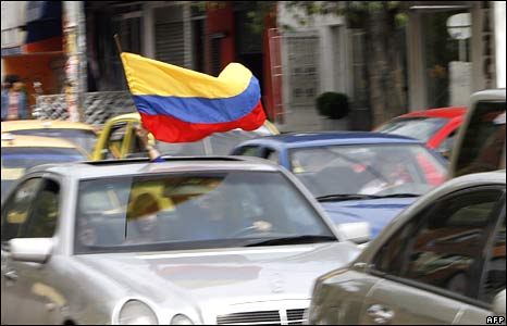 Operasyon haberinin duyulmasıyla Bogota sokaklarında kutlamalar yapıldı. |