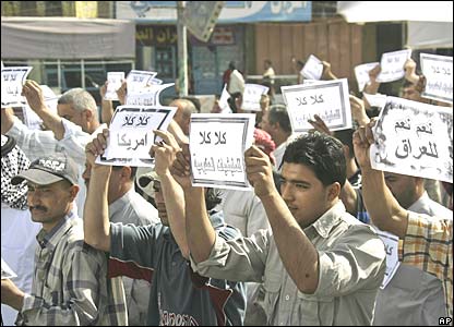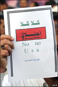 Bağdat'ın başka bir semtinde 'ABD'ye Hayır, Irak'a Evet' dövizleri taşındı.