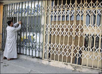Mukteda es-Sadr, Bağdat'ın batı mahallelerinde önemli ağırlığa sahip. Şii dinadamının emriyle bu bölgelerde dükkanlar kepenk indirdi.