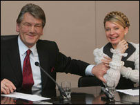 Юлія Тимошенко вкотре запевнила, що її політична сила ніколи не піде на домовленості із Партією регіонів Віктора Януковича і хотіла б таку ж відповідь почути і від президента Віктора Ющенка.