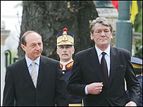 Президенти України та Румунії, Віктор Ющенко та Траян Басеску відкрили пункт пропуску «Солотвино – Сігету-Мармацієй» на кордоні між двома країнами. Президент України назвав відкриття пропускного пункту і реконструкцію мосту через р. Тиса «одним із багатьох шляхів, яким Україна йде до Європи». Віктор Ющенко подякував особисто Президенту Румунії, дипломатам, будівельникам та всім іншим, хто доклався до відкриття нового пропускного пункту. Пізніше двоє лідерів повідомили про спрощення візового режиму між Україною та Румунією: президент Басеску пообіцяв безкоштовні візи для українців, тоді як президент Ющенко сказав, що румуни, так само як і громадяни решти країн Євросоюзу, матимуть право на безвізові подорожі до України. Під час одноденного візиту президента Ющенка до Румунії також обговорювалися, зокрема, нерозв’язані досі проблеми континентального шельфу у Чорному морі та питання енергетичної безпеки. Щодо проблеми делімітації континентального шельфа, то ця справа перебуває на розгляді у Міжнародному суді в Гаазі, хоча президенти двох країн неодноразово заявляли про бажаність вирішити питання на двосторонній основі.
