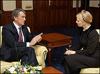 Водночас, президент Віктор Ющенко перед відбуттям до Королівства Данія зустрівся Юлією Тимошенко, і вони обмінялися думками щодо створення єдиної комісії з державотворення, про необхідність якої йшлося на вчорашній зустрічі глави держави з прем’єр-міністром і головою Верховної Ради.