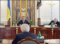 В той час як прихильники правлячої коаліції пікетували Верховну Раду, в Секретаріаті президента проходили консультації за участю Віктора Ющенка, спікера Олександра Мороза та голів фракцій.
