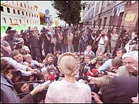 Пані Тимошенко заявила біля будинку Генеральної прокуратури, що Україна повинна звернутися до провідних міжнародних лабораторій для експертизи. У прокуратурі також очікують депутата Давида Жванію як свідка у цій справі, який твердив про фальсифікацію отруєння пана Ющенка. Міжнародна експертиза підтвердила, що пана Ющенка було отруєно діоксином. Пані Тимошенко також в чергове спростувала як "маразм" звинувачення у її співпраці з Кремлем. Раніше прем'єр заявляла про тиск на Генпрокуратуру з боку секретаріату президента з метою порушення проти неї карної справи і твердила, що за нею стежать служби безпеки. Напередодні, пані Тимошенко пояснила свою готовність свідчити тим, що, як вона висловилася, вона є законослухняною людиною. Вона пожартувала, що готова щодня ходити до прокуратури, якщо це збереже коаліцію, яку, як вона вважає, руйнують пропрезидентські сили. ГПУ про отруєння