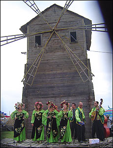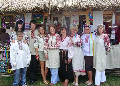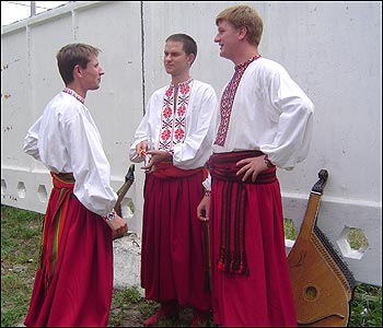 А це - українці з білорусьского Полісся. У старовинних полотняних сорочках, що збереглися від бабусі.