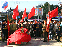 Ветерани НКВД відкрили в Сімферополі пам'ятний камінь жертвам, полеглим від рук воїнів ОУН УПА 8 липня 2007 року. Фото Укрінформу