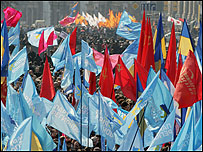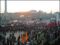 vl, Kirovograd, Ukraine: Цікаво, панове "помаранчеві демократи", а що станется за перемоги Тимошенка, Ющенка та Жванії(слава Україні?!) на другому "майдані"? Вся брехня помаранчів про скорий вступ до ЕС спростована резолюціями та рішеннями керівників ЕС. Під час прем"єрства Тимошенка у 2-3 рази!!! піднялись ціни на м"ясо, бензин, житло, газ, цукор-скільки ми нарахували тоді криз? Ющенко показав взірець демократії, назвавши журналіста по УСІХ ТВ каналах мордою! А епідемія самогубств з контрольним пострілом у голову! Знищення ДАІ і величезна кількість аварій! Що ще гарного сталося за добу панування "памаранчевих"? До речі, якщо пані Стефанія з Торонто не знає, - усі керіники "майдану 2"-діти вищої партійної номенклатури КПРС, деякі з героїчним комсомольским минулим. То якої ж демократії ви чекаєте від відступників- комуністів, комсомольців, а тепер мульті-міліонерів Жванії, Луценка, Тимошенко то що? Може краще запитати в Жванії - куді поділося " золото партії"?