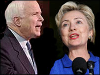 Бі-Бі-Сі: Сенаторові МакКейну 68 років, і він є ветераном В’єтнамської війни. Він був полоненим і 5 років ув'язненним у Ханої, що пояснює його критику ставлення до в’язнів на американській базі Гуантанамо. За словами МакКейна в’язнів слід або судити або звільнити. Проте, сенатор не вважає Ірак повторенням В’єтнаму для Президента Буша, оскільки, на відміну від Саддама Хусейна Хо Ше Мін був популярним не лише, як комуністичний, але й націоналістичний лідер: МакКейн: До того слід додати втручання надпотуг - Росії та Китаю, що зробило той конфлікт великою мірою безпросвітним. Я гадаю, що паралель існує лише в тому, що американцям слід було відразу сказати, що конфлікт буде важким. Якби відразу про це казали, то американці були б до цього готові. Саме це може нам коштувати втрату підтримки американського суспільства. Бі-Бі-Сі: Аби здобути підтримку американської громадськості сенатор вважає конче необхідним зменшити кількість жертв серед військових США в Іраку. Для цього необхідно заміщувати американські підрозділи новим іракським військом. У цьому погляди МакКейна збігаються з поглядами Джорджа Буша. Але врешті решт, чи сенатор МакКейн знову висуватиметься кандидатом від республіканців на кандидата у президенти США? Зауваживши, що остаточне рішення він ухвалить після виборів до конгресу у 2006 році, Джон МакКейн сказав так: МакКейн: Я мав друга, який колись працював у палаті представників, і казав, що кожен сенатор США, за винятком тих, хто має судові обмеження, повинен автоматично вважати себе кандидатом у президенти США. |