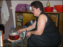 Картопля, рис, макарони і квасоля, з якої грузини роблять одну з найпоширеніших страв – лобіо – такий щоденний раціон біженця з Південної Осетії. Вони говорять, що в принципі цього вистачає і з голоду вони не помруть і нагадують, що вони ще добре живуть, бо ті, хто оселився у школах, були змушені спати просто на партах: