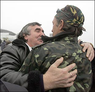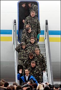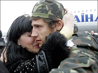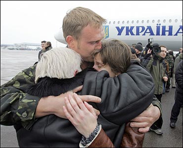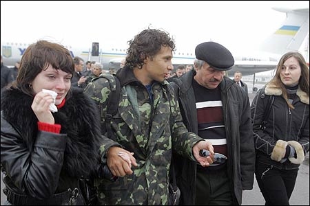 Родичі моряків разом із Президентом Ющенком зустрічали їх в аеропорту «Бориспіль». Фото УНІАН