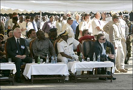 Урочиста зустріч ”Фаїни” в Момбасі урядовими делегаціями України і Кенії. Фото УНІАН
