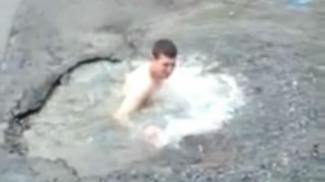 В Ірландії автомобілісти зняли кадри того, як у глибокій ямі, що утворилася внаслідок рекордних дощів, можна викупатися.