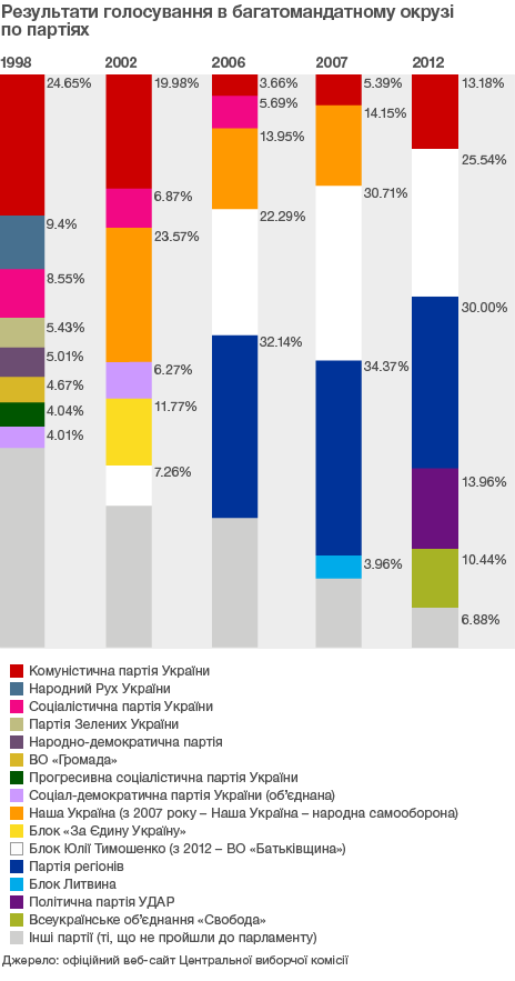 В Україні завершилися п'яті парламентські вибори. Голосування відбулося 28 жовтня 2012 року, результати виборів були опубліковані 13 листопада 2012 року.