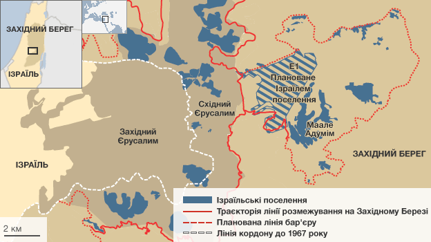 Генсек ООН наголосив, що будь-які плани забудови так званої зони Е1, розташованої між Єрусалимом і поселенням Маале-Адумім на Західному березі Йордану, мають бути анульовані.
