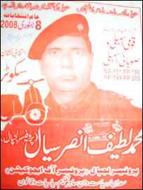 دریافت کیا کہ آیا سال میں اتنے انتخابات ہوتے بھی ہیں تو محمد لطیف انصر سیال المعروف پروفیسر لجپال نے بتایا کہ جہاں بھی کوئی منتخب رکن انتقال کرتا ہے یا مستعفی ہوتا ہے تو وہ اس کے نتیجے میں ہونے والے ضمنی انتخاب کو بھی نہیں چھوڑتے اور میدان میں کود پڑتے ہیں۔ اکاون سالہ پروفیسر لجپال چھ اکتوبر کے صدارتی انتخاب میں بھی حصہ لے چکے ہیں اور اب اٹھارہ فروری کے عام انتخابات کے بعد ان کا ہدف بےنظیر بھٹو کے لاڑکانہ حلقے سے ضمنی انتخاب میں حصہ لینا ہے۔ ان تمام انتخابات میں ان کے لیے نتیجہ ایک ہی رہا ہے یعنی شکست۔ اکاون سالہ پروفیسر لجپال کہتے ہیں کہ ان کا انتخابات میں حصہ لینے کا واحد مقصد لوگوں کو آگہی دینا ہے کہ سیاستدان شعبدہ باز ہیں اور قومی دولت ہڑپ کرنا ان کا واحد مقصد ہے۔ ’وہ اس طریقے سے ملک کی جڑیں کھوکھلی کر رہے ہیں اور رقوم بیرون ملک منتقل کر رہے ہیں۔ ان کو رد کرنا چاہیے۔‘ بنیادی طور پر ایک استاد ہیں، شاعری بھی کرتے ہیں اور سیاست تو ہے ہی ان کا ہدف۔ ان انتخابات میں وہ قومی اسمبلی کی ایک (این