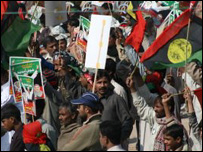 کی شکل میں اور زندہ ہے بی بی زندہ ہے کہ نعرے لگاتے ہوئے آتے رہے جبکہ کئی ٹولیاں ڈھول کی تھاپ پر رقص کرتی اور ترانے گاتی آئیں۔