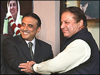 ایسے میں تو صدر پرویز مشرف کے پاس صرف دو ہی راستے بچتے ہیں کہ وہ مستعفی ہوجائیں یا پھر انہیں بے اختیار بنانے والی اسمبلی کے وجود میں آنے یا اس کے فوری بعد ہی ختم کردیں۔ بعض تجزیہ کار کہتے ہیں کہ صدر صاحب کی اب حالت اس شخص جیسی ہوتی جا رہی ہے جو ایک اونچائی پر کھڑا ہو اور اس کی سیڑھی کھسکتی جا رہی ہو۔ لیکن یہ بھی اپنی جگہ حقیقیت ہے کہ قانون کے مطابق وزیراعظم اور ان کی کابینہ کو حلف صدر پرویز مشرف کے ہاتھوں ہی اٹھانا ہوگا۔ جس سے ملک میں ایمرجنسی نافذ کرکے ججوں کو برطرف کرنے والے صدر مشرف کی قانونی حیثیت کو نئی حکومت کی جانب سے ایک لحاظ سے تقویت بھی ملے گی۔ |