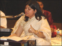 اسی موقع سے امیر خسرو کی غزل اورقوالی کو گلوکارہ انیتا سنگھوی نے آواز دے کر وہ سماں باندھا کہ: ’من تو شدم تو من شدی، من تن شدم تو جاں شدی کا ماحول بیدار ہو گیا۔ اور جب انھوں نے امیر خسرو کا کلام: ’نمی دانم چہ منزل بود شب جائے کہ من بودم یا ’چھاپ تلک سب چھینی مو سے نینا ملائے کے‘ اور ’بہت کٹھن ہے ڈگر پنگھٹ کی گائی تو ہر کس وناکس پر ایک وجد کا عالم طاری ہو گیا۔ امیر خسرو سیمنار میں ان کی شخصیت اور تصانیف کو جن عنوانوں کے تحت بیان کیا گیا وہ بھی ان کی شخصیت کا احاطہ کرنے میں عاجز نظر آئے۔ ایران، افغانستان، ترکمانستان، پاکستان، تاجکستان، بنگلہ دیش، انگلینڈ اور جرمنی سے تشریف لانے والے اسکالرز نے امیر خسرو کی شخصیت پر اپنے مقالےکئی زبانوں میں پڑھے اور سامعین یہ کہنے پر مجبور ہوئے کہ: زبان یار من ترکی و من ترکی نمی دانم |