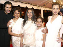 فلم ’واٹر‘ میں کام کرنے والے اداکار، ہدایت کارہ دیپا مہتا کے ہمراہ
