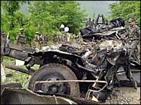 شدت پسند تنظیم حزب المجاہدین نے اس دھماکے کی ذمہ داری قبول کر لی ہے اور کہا ہے کہ یہ حملہ حال ہیں میں ہلاک ہونے والے تنظیم کے مرکزی رہنماؤں کا بدلہ لینے کے لیے کیا گیا تھا۔ اس بارودی سرنگ کو ایک ریموٹ کنٹرول کے ذریعے فوجی قافلے کے پہنچتے ہی اڑا دیا گیا۔ دھماکے کی وجہ سے بس کی ٹینکی بھی پھٹ گئی اور ہلاک ہونے والوں کی نعشیں جھلس گئیں۔ دھماکے کی اطلاع ملتے ہیں فوجی ہیلی کاپٹروں کو زخمیوں کو ہسپتالوں تک لئے جانے کے لیے روانہ کر دیاگیا۔ دھماکے کی شدت سے کہ فوجی قافلے میں شامل ایک بس عقب میں آنے والی ایک مسافر بس سے ٹکرا گئی جس کی وجہ سے تین افراد زخمی ہو گئے۔ اس ماہ کے شروع میں پولیس نے شکیل احمد بٹ جو کے شکیل انصاری کے نام سے مشہور تھے اور حزب المجاہدین کے ڈویژنل کمانڈر بھی تھے کو ایک جھڑپ میں ہلاک کر دیا تھا۔ اسی ہفتے حزب مجاہدین کے ایک اور رہنما عبدالرشید المعروف غازی شھاب الدین کو بھی ہلاک کر دیاگیا تھا۔ |
