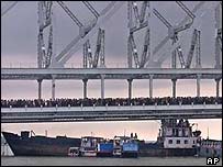 جمعہ کو اس وقت کلکتہ کے مشہور ’ہاؤڑہ برج‘ پر لوگوں کی بھیڑ لگ گئی جب ایک بحری جہاز پل کے نیچے پھنس گیا۔