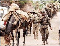 ہندوستان کے زیر انتظام کشمیر میں انتہا پسندوں کے ایک حملے میں دو فوجی ہلاک اور چھ زخمی ہوگئے ہیں۔ انتہا پسندوں کے ساتھ فوجیوں کی جھڑ پ اب بھی جاری ہے۔ فوج کا کہنا ہے کہ وادی میں زلزلے کے بعد بھی علیحدگی پسندوں کی سرگرمیاں پہلے ہی کی طرح جاری ہیں۔ جموں میں فوج کے ایک ترجمان کرنل آر کے چھبر نے بتایا کہ صبح کے وقت جب فوجی اپنی روز مّرہ کی مشق میں مصروف تھے دو مسلح افراد نے ان پر اندھا دھند گولیاں چلائیں اور دو گرینڈ پھینکے۔ اس واقعے میں دو فوجی ہلا ک جبکہ چھ شدید طور پر زخمی ہوئے ہیں۔ ترجمان کے مطابق یہ واقعہ جموں سے قریب کتھوا کے علاقے میں ہوا ہے اور پندرہ برس سے جاری تشدد میں اس علاقے میں ایسا پہلی بار ہوا ہے۔ مسٹر چھبر کے مطابق زخمیوں میں سے تین کے حالت نازک ہے اور انہیں فوجی ہسپتال میں میں داخل کیا گیا ہے۔ فوج نے علاقے کا محاصرہ کر لیا ہے۔ ہندوستان میں ذرائع ابلاغ نے اس طرح کی خبریں شائع کی تھیں کہ زلزلے کے سبب وادی میں انتہا پسندی میں کمی آسکتی کیونکہ انتہا پسندوں کے بنکر تباہ ہوگیے ہیں۔ لیکن دلی میں فوج کے ڈائریکٹر جنرل آف ملٹری آپریشن مدن گوپال نے کہا ہے کہ دراندازی میں کوئی کمی نہیں ہوئی ہے۔ مسٹر گوپال نے نیوز کانفرنس سے خطاب کرتے ہوۓ کہا کہ '' گزشتہ ہفتے میں فوج نے انتیس انتہا پسندوں کو ہلاک کیا ہے اور ان میں سے سولہ دراندازی کرنے کی کوشش کررہے تھے ''۔ فوج کے اعلی افسر نے یہ بھی کہا کہ زلزلے سے آئي تباہی میں انتہا پسندوں کی مرنے کی بھی انہیں توقع تھی۔ خاص طور پر ان علاقوں میں جو سب سے زیادہ متاثر ہوئے ہیں اور جہاں لشکر طیبہ اور حزب المجاہدین کے ارکان بھی تھے۔ ادھر ہندوؤں کی سخت گیر سیاسی جماعت شیو سینا پاکستان کو امداد دینے کے بھارتی حکومت نے اسکی مخالفت کا اعلان کیا ہے۔ پارٹی نے کہا ہے کہ کشمیر کے انتہا پسند فوجیوں پر حملہ کرتے رہے ہیں اور ہندوؤں کو مارتے ہیں اس لیے حکومت کو چاہیے کہ وہ انکے لیے امدادی سامان پاکستان نہ بھیجے۔ پارٹی نے اتوار کے روز دارلحکومت دلی میں اسکے خلاف ایک احتجاجی مظاہرے کا بھی اعلان کیا ہے۔ |