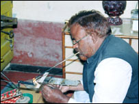 اشفاق احمد اپنے گھر پر ہی کام کرتے ہیں لیکن زیوارات کے دکان داروں کے آرڈر پر یہ وہ جوتیاں فراہم کرتے رہتے ہیں۔ انہیں کاریگری کی ہی قیمت ملتی ہے اور وہ اوسطاً آٹھ ہزار روپیۓ لیتے ہیں۔ ایک سوال کے جواب میں اشفاق نے بتایا کہ لکھنؤ ہی نہیں آس پاس کےسب قصبات اور کولکتہ سے بھی جوتی بنانے کے انکے پاس آڑدر آتے ہیں۔ انہوں نے بتایا کہ ’چاندی کی جوتیاں بنانے والے پہلے زیادہ کاریگر تھے۔ اب ہم اس چراغ کو جلا رہے ہیں ۔‘ ایک سرکاری ادارے للت کلا اکیڈمی نے اشفاق کے دیدہ زیب زیر پاء کو اپنی نمائش میں رکھنے میں دلچسپی دکھائی ہے اور اس سےاشفاق بہت خوش ہیں۔ |