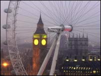 | | | ’لندن آئی‘ کو سنہ 2000 میں عوام کے لیئے کھولا گیا تھا | دلی میں سنہ دو ہزار دس میں دولتِ مشترکہ کھیل ہونے والے ہیں اور شہر کو خوبصورت بنانے کے لیئے طرح طرح کی کوششیں کی جا رہی ہیں۔ اسی سلسلے میں محکمۂ سیاحت نے لندن میں ٹیمز کے کنارے موجود جھولے ’لندن آئی‘ کی طرز پر شہر کے ملینیئم پارک میں ’دلی وہیل‘ تعمیر کرنے کا منصوبہ بنایا ہے۔ منصوبہ کے مطابق اس جھولے کی چوڑائی ایک سو پچاس میٹر ہوگی اور اس میں جو بیٹھنے کی جگہیں بنائی جائیں گی اس میں چار افراد ایک ساتھ بیٹھ سکیں گے۔ اس جھولے میں بیٹھ کر لوگ انڈیا گیٹ، پرانہ قلعہ، صفدر جنگ اور ہمایوں کے مقبروں جیسی قدیم عمارتوں کا اونچائی سے نظارہ کر سکیں گے۔ گجرات نہ سہی جام نگر سہی