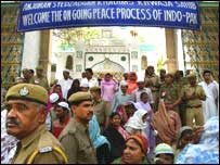 ہندوستان کی ریاست راجستھان میں حکام کا کہنا ہےوہ جلد ہی ان 13 پاکستانی شہریوں کو واپس بھیجنے والے ہیں جو بنا اجازت اجمیر شہر آئے تھے۔ اجمیر کے ایک سینئر پولیس اہلکار ویربھان اجوانی کا کہنا ہے کہ پاکستان کے خادموں کے ایک گروپ کو آگرہ، جے پور اور دلی جانے کی اجازت تھی لیکن یہ وفد اجمیر شریف درگاہ کی زیارت کرنے کے لئے بھی آگیا۔ وفد کے افراد کے پاس ہندوستان میں رہنے کے لئے تین ہفتے کا ویزا ہے۔ خادموں کا یہ وفد گزشتہ ماہ 27 نومبر کو واہگہ - اٹاری بارڈر کے ذریعے پاکستان سے ہندوستان آیا تھا تاہم اب یہ وفد ہندوستان اور پاکستان میں مسافروں کے لئے سفر کی شرائط کو مزید لچکدار بنانے کا مطالبہ کر رہا ہے۔ ویزے کے بغیر اجمیر کا دورہ کرنے پر پولیس نے اس برس تقریبًا 50 پاکستانی شہریوں کو حراست میں لیا ہے۔ | اسی بارے میں پاکستانیوں کے لیے زیارتیں اورفیسٹیول 17 August, 2005 | انڈیا خواتین پر پابندی نہیں: اجمیر درگاہ15 June, 2006 | انڈیا ’اجمیر:پاکستانی وفد کا استقبال نہیں‘06 August, 2006 | انڈیا اجمیر: قطرینہ کی اسکرٹ سے تنازعہ05 October, 2006 | انڈیا | ||||||||||||||||||||||||||||||||||||||||