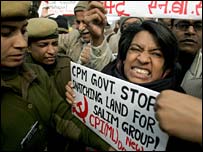 مغربی بنگال میں خصوصی اقتصادی خطے کے خلاف نندی گرام میں کسانوں کے مظاہرے پر پولیس کی فائرنگ میں کم از کم دس افراد ہلاک اور متعدد زخمی ہوگئے ہیں۔ تاہم پولیس نے صرف دو اموات کی تصدیق کی ہے جبکہ مقامی ہسپتال کے ڈاکٹر کا کہناہے کہ زخمیوں میں سے پانچ افراد نے دم توڑ دیا ہے۔ مغربی بنگال حکومت کے اعلٰی افسر پرساد رنجن راؤ کے مطابق پولیس نے پہلے مظاہرین کو منتشر کرنے کے لیے آنسو گیس پھینکی اور جب ان پر مظاہرین نے حملہ کیا تو انہوں نے لاٹھی چارج کیا اور فائرنگ کی۔ نندی گرام میں مجوزہ کیمیائی صنعت کے لیے الاٹ کی گئی زمین کی تجويز کی کسان مخالفت کر رہے ہیں۔ کسانوں کو روکنے کے لیے تقریبا پانچ ہزار پولیس والوں کو صنعت کے لیے الاٹ کی گئي زمین کے آس پاس تعینات کیا گیا ہے۔ کسانوں کو حزب اختلاف کی اہم جماعت ترنمول کانگریس کی حمایت حاصل ہے اور ترنمول کانگریس نے پولیس فائرنگ کے خلاف ریاست میں جمعہ کو ہڑتال کا اعلان کیا ہے۔ گزشتہ سات جنوری کو نندی گرام میں چھ افراد کی ہلاکت کے بعد پولیس نے مجوزہ ایس ای زیڈ کے لیےالاٹ کی گئی زمین پر کسانوں کے جانے پر پابندی لگا دی ہے۔ اس سے قبل بھی ریاست میں ایک نجی کمپنی ٹاٹا موٹرز کو کار بنانے کے لیے سینگورعلاقہ میں زرعی زمین الاٹ کرنے پر ریاستی حکومت کو زبردست مخالف کا سامنا کرنا پڑا تھا۔ | اسی بارے میں این ڈی اے: کسانوں کو زمین واپس کریں28 December, 2006 | انڈیا بھوک ہڑتال سے ممتا کی حالت خراب29 December, 2006 | انڈیا مجوزہ صنعتکاری، کسانوں کا احتجاج09 January, 2007 | انڈیا مغربی بنگال: ہڑتال سے زندگی متاثر01 December, 2006 | انڈیا انڈیا: ایک ارب ڈالر کا قرضہ 12 December, 2006 | انڈیا مغربی بنگال میں کسانوں کا احتجاج03 December, 2006 | انڈیا مظاہرین پر پولیس کا لاٹھی چارج08 December, 2006 | انڈیا مغربی بنگال میں ہڑتال اور تشدد08 January, 2007 | انڈیا | ||||||||||||||||||||||||||||||||||||||||