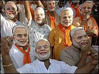 جلسوں میں ہزاروں لوگ مودی کا مکھوٹا پہنے ہوۓ نظر آتے تھے ۔