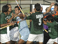 ایشیاء کپ جونئیر ہاکی کے سیمی فائنل ميں بھارت اور پاکستان کے کھلاڑیوں کے درمیان زبردست جھڑپ ہوئی ہے۔