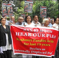 کشمیری پنڈتوں کا خاموش جلوس کشمیری پنڈتوں نے اپنی برادری کے لوگوں کے قتل عام کے معاملات کی جانچ کرائے جانے کے لیے تحقیقاتی کمیشن قائم کرنے کا بھی مطالبہ کیا۔ وہ یہ مطالبہ بھی کر رہے تھے کشمیر میں مقیم کشمیری پنڈتوں کو حفاظت فراہم کی جائے اور کشمیر میں واقع ہندو مذہبی مراکز ہندوؤں کو سونپ دیے جائیں۔ ہندوستان کے زیرِانتظام جموں کشمیر میں 1989 میں مسلح جد و جہد کے آغاز کے ساتھ ہی اقلیتی ہندو فرقے سے تعلق رکھنے والے کشمیری پنڈتوں کی ہجرت کا سلسلہ بھی شرع ہوا۔ اس وقت ایک بڑی تعداد میں کشمیری پنڈت جموں، دلی اور دیگر مقامات پر مقیم ہیں۔ ان کا الزام ہے کہ حکومت نے ان کی آبادکاری کے لیے مناسب اقدامات نہيں کیے ہیں۔ |