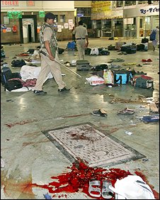 ’بھیرو سنگھ سنہا چھترپتی شیواجی ٹرمنس (سی ایس ٹی) پر اپنے خاندان کے افراد کے ہمراہ وارانسی جانے کے لیے ٹرین کا انتظا ر کر رہے تھے کہ وہ اندھا دھند فائرنگ میں گھرگئے۔ حملے میں ان کے پوتے اور پوتی شدید زخمی ہوگئے۔ حملوں میں ہلاک یا زخمی ہونے والوں میں سب سے زیادہ تعداد سی ایس ٹی پر ہونے والی فائرنگ کی زد میں آنے والوں کی ہے، یہاں دو بندوق برداروں نے ٹرینوں کے منتظر مسافروں پر فائرنگ شروع کر دی۔ جنوبی ممبئی کے سینٹ جارج ہسپتال میں اب تک تریسٹھ افراد کی ہلاکت کی تصدیق ہوچکی ہے۔ تقریباً سو زخمیوں کو دیگر ہسپتالوں میں بھیجا گیا ہے۔ ڈاکٹروں کا کہنا ہے کہ مرنے والوں کی اکثریت گولیوں کا نشانہ بنی ہے۔ ہسپتال کے رسیپشن کا منظر ہولناک تھا۔ کئی لاشیں ایک عارضی احاطے میں پڑی ہوئی تھیں، اور رشتہ دار اپنے عزیزوں کی شناخت کے لیے آ رہے تھے۔ ڈاکٹروں کا کہنا تھا کہ جن زخمیوں کو انتہائی طبی نگہداشت کی ضرورت تھی انہیں جے جے اور دیگر ہسپتالوں