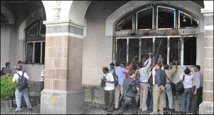 ہندوستان کے شہر ممبئی میں شدت پسند حملوں کے تقریباً اٹھاون گھنٹوں کے بعد سنیچر کی صبح تاج ہوٹل میں سکیورٹی فورسز کی کارروائی